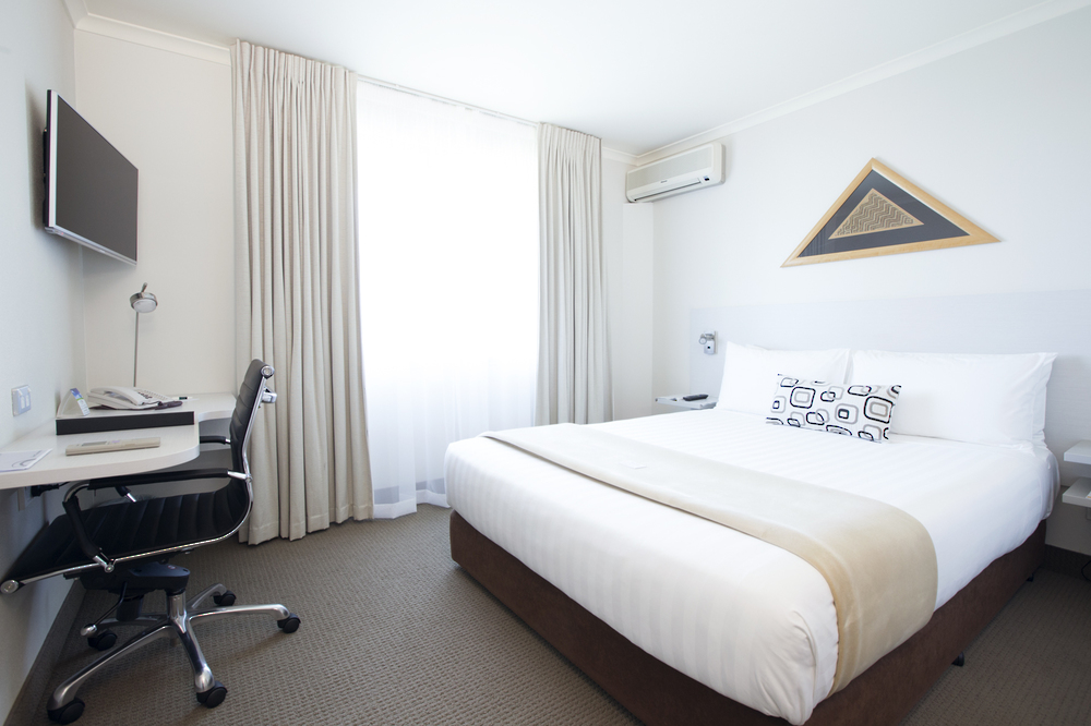 The Queen Room is fitted with a comfortable queen size bed, soundproof windows and blackout drapes allowing you to rest after your flight - no matter what time of day it is. The tea and coffee bar are always stocked for an early morning caffeine boost.